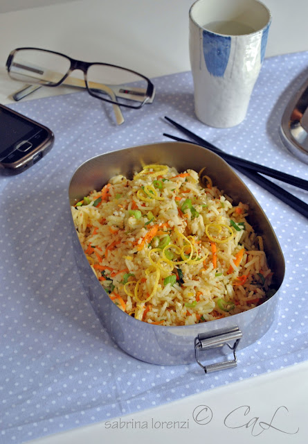 Il risultato è comunque un riso molto fresco, profumato, che potete preparare in anticipo e portare anche in ufficio. E' ovviamente personalizzabile, potete arrichirlo ad esempio con dei gamberetti saltati, ma a me piace così, in tutta la sua semplicità.