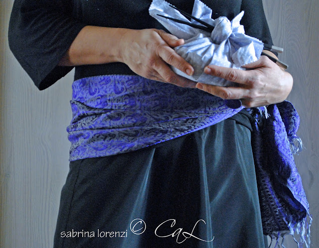 Preparando il piatto, la mia mente ha iniziato a "volare": ho pensato all'Oriente, ai Bento (il pranzo preconfezionato che i giapponesi si portano in ufficio), e così mi è venuta in mente un'altra amica, che come l'altra si chiama Laura e ama il Giappone, assieme a lei ho seguito lo scorso anno un corso di Furoshiki.